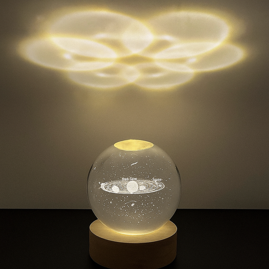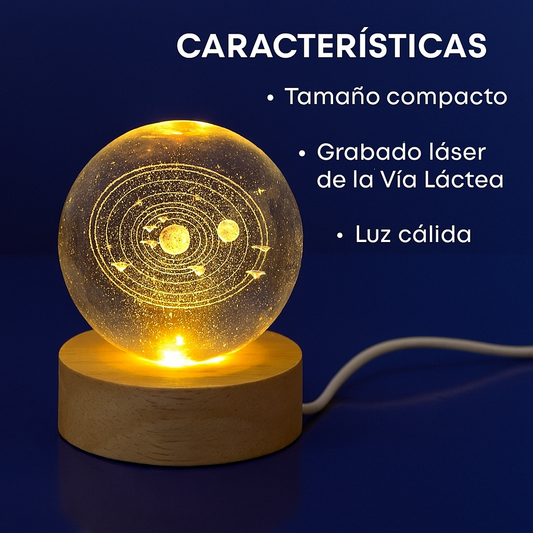 Luz Nocturna LED Vía Láctea – Lámpara 3D Bola de Cristal con Base de Madera